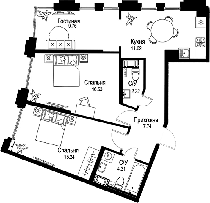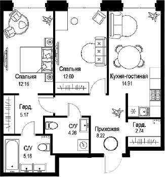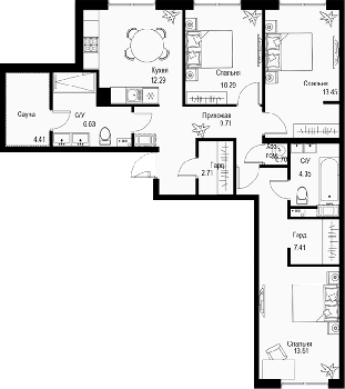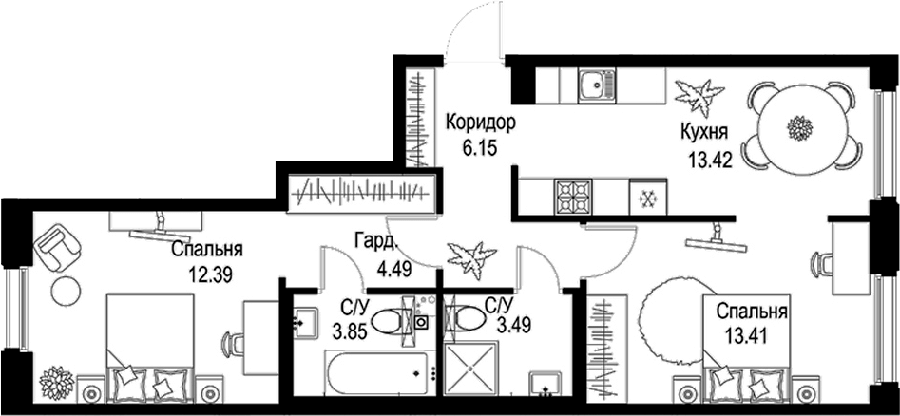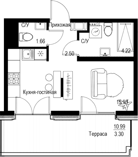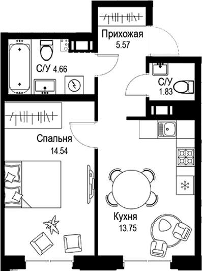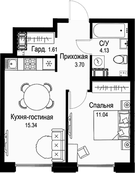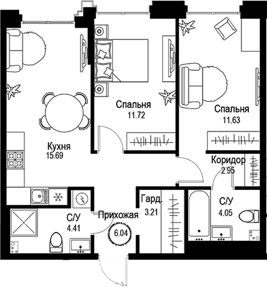 Площадь от 44.15 м2