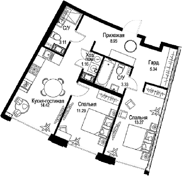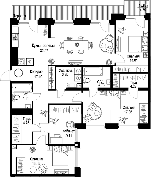 Площадь от 35.11 м2