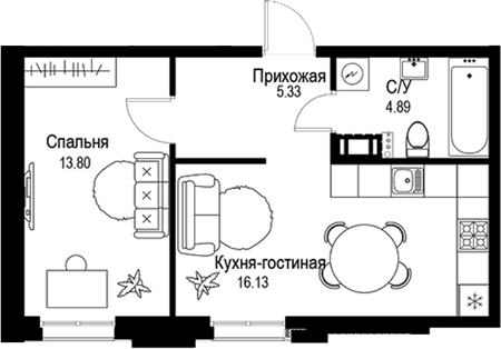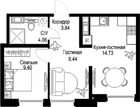 Площадь от 20.84 м2