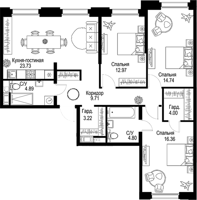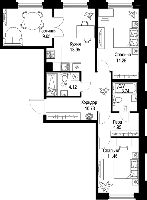 Площадь от 67.5 м2