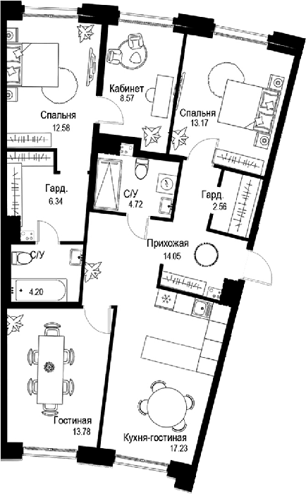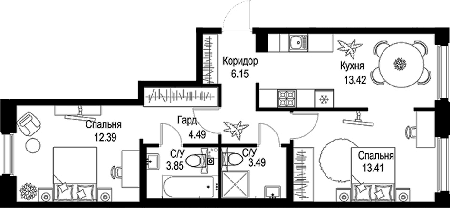 Площадь от 67.42 м2