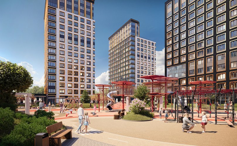 Для жителей предусмотрены просторный центральный двор-плейхаб с разными форматами активностей, беговая дорожка, сад непрерывного цветения, настольный теннис, детская площадка и зона для стритбола.