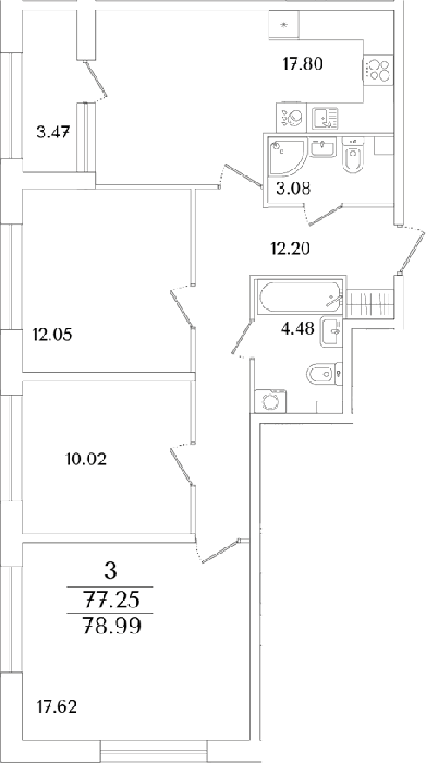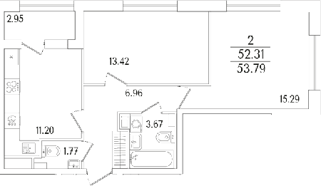 В проекте представлен широкий выбор планировок: студии и квартиры с 1–3 спальнями, в том числе европланировки. Доступны квартиры с кухнями-гостиными, мастер-спальнями, гардеробными и просторными лоджиями. Высота потолков варьируется от 2,74 до 3,04 м. Помещения идут без отделки, в подчистовом или чистовом исполнении — в зависимости от корпуса.