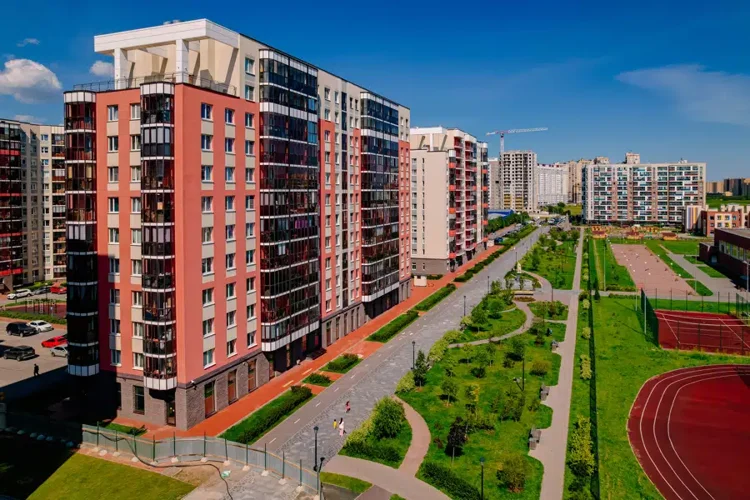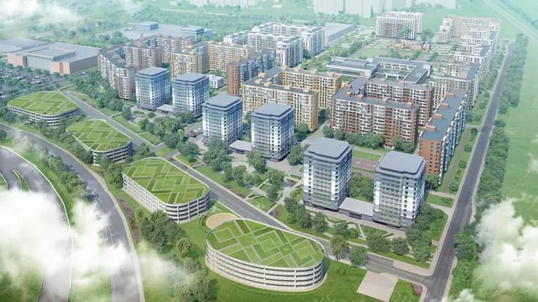 17 кирпично-монолитных корпусов высотой от 6 до 12 этажей. В облицовке фасадов применяется штукатурка светлых оттенков, они оформлены закругленными балконами. Дома оснащены бесшумными скоростными лифтами и кладовыми помещениями на этажах.