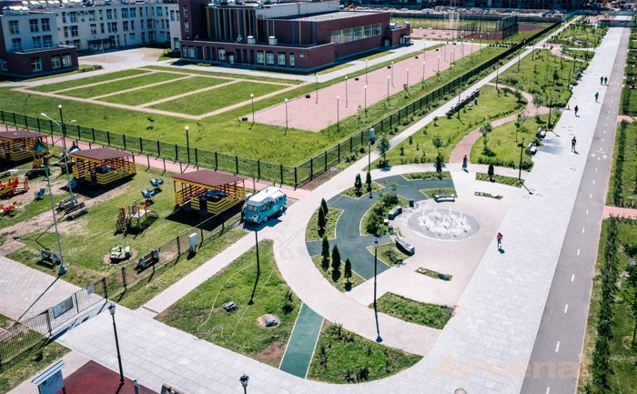 Территория благоустроена местами для отдыха и пикника, скверами и палисадниками, велосипедными дорожками. В состав жилого комплекса входят школа с углубленным изучением английского языка и 2 детских сада.