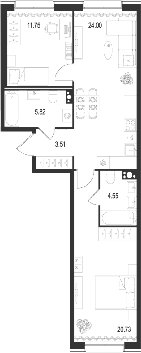 В проекте представлены студии и квартиры с 1, 2 и 3 спальнями, также есть варианты с европланировками. В помещениях предусмотрены потолки от 2,7 до 3,6 метров и увеличенные окна, откуда открываются живописные виды на набережную Невы.