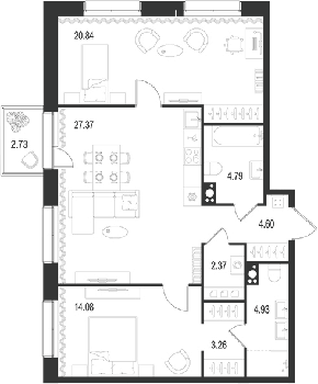 Площадь от 62.19 м2