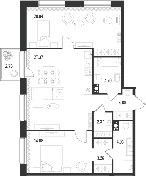 Площадь от 39.2 м2