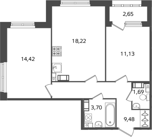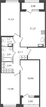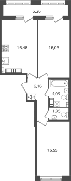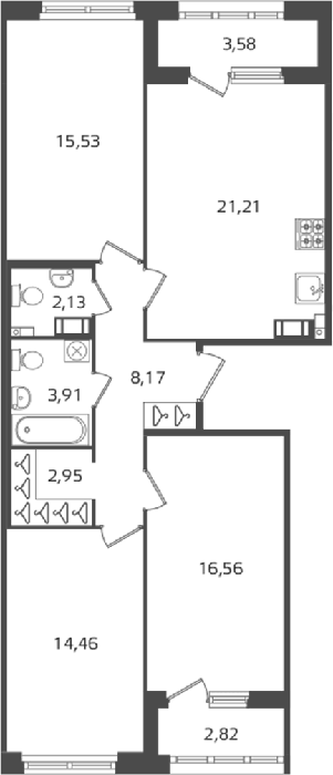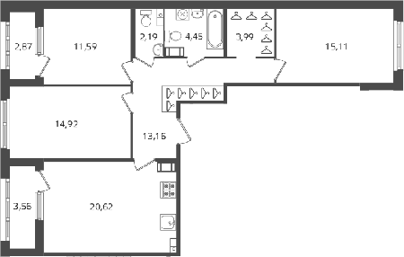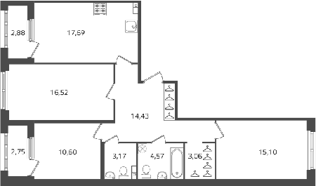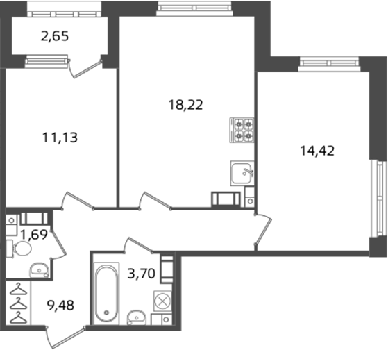 В проекте представлено несколько планировочных решений — от студий до просторных 3х-комнатных квартир с чистовой отделкой, высотой потолков 2,7 метров и увеличенными окнами.