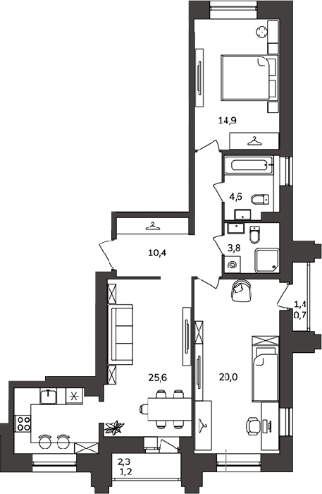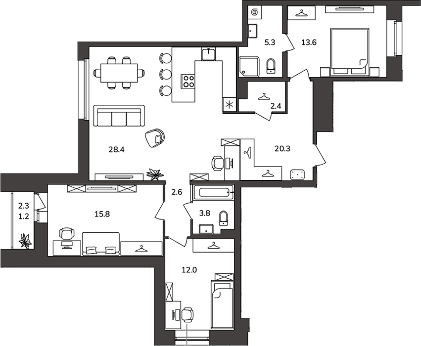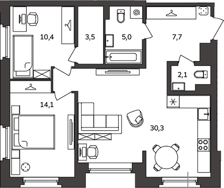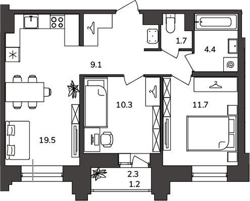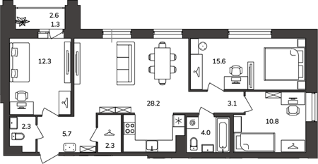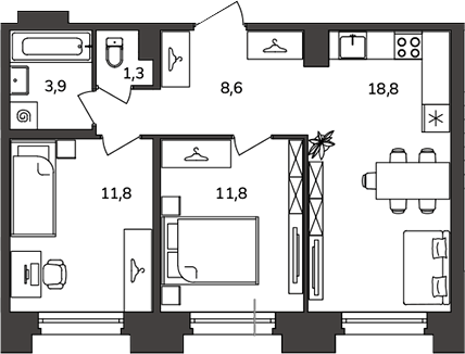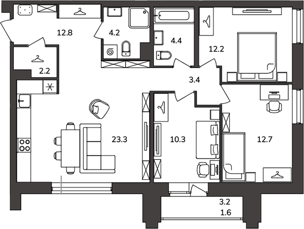 Комплекс включает 1-, 2- и 3-х комнатные варианты, с высотой потолков до 3 метра. Квартиры передаются с подчистовой отделкой и высотой потолков до 3 метров. В каждой квартире предусмотрены просторные кухни-гостиные, увеличенные оконные проемы и кладовые для хранения. Балконы и лоджии остеклены. Есть квартиры с мастер-спальнями.