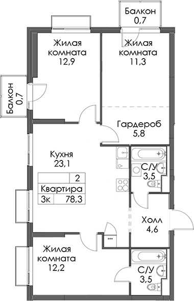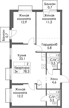 В проекте предложено множество планировочных решений: от студий до трехкомнатных. Сдаются они с чистовой отделкой, увеличенными окнами и с высотой потолков 2,62 метров. В каждой квартире предусмотрены корзины под кондиционеры.