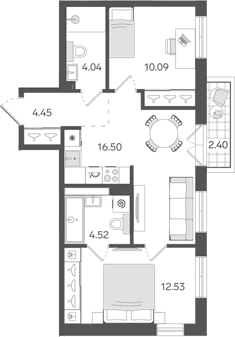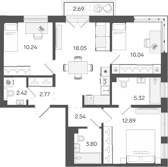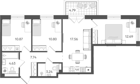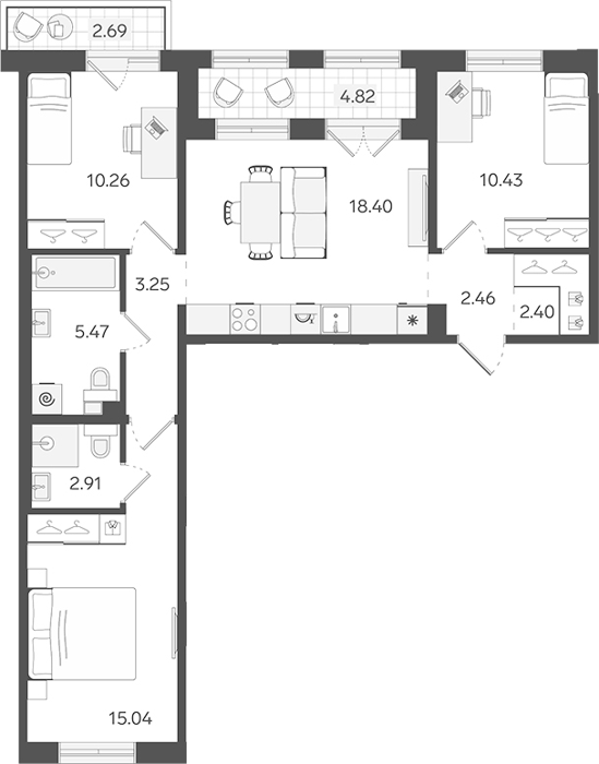 В проекте предлагаются студии и квартиры с 1–3 комнатами, а также европланировки. Доступны квартиры с террасами и каминами. В помещениях установлены увеличенные окна, благодаря которым пространство наполнено светом. Высота потолков составляет 3 м.