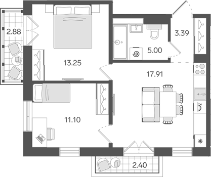 Для комфорта жильцов внедрены современные технологические решения: органная система вентиляции c возможностью установки систем приточно-вытяжной вентиляции (рекуперация), система отопления водяным полом, трапы в с/у, система очистки воды, а также умный дом.