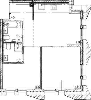 Площадь от 36.47 м2