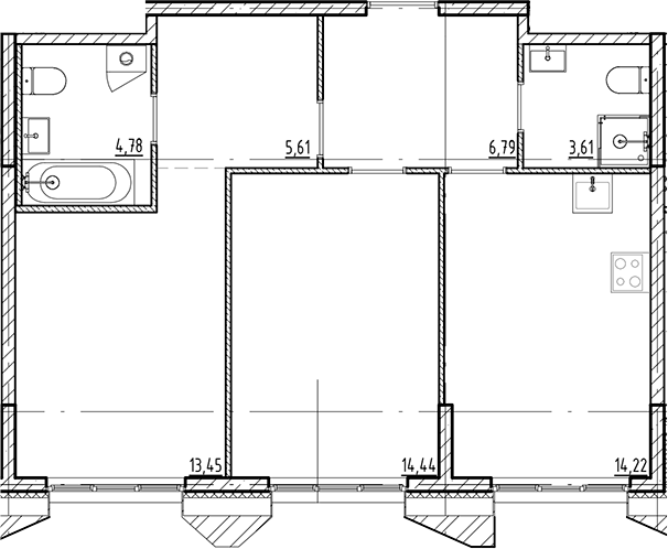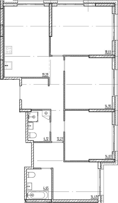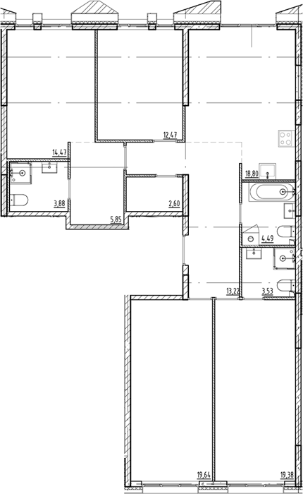 Площадь от 75.67 м2
