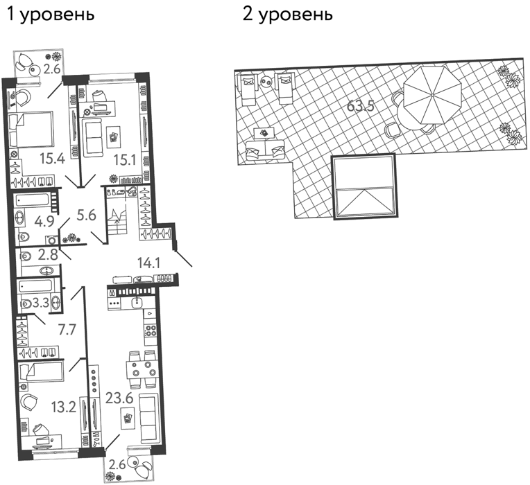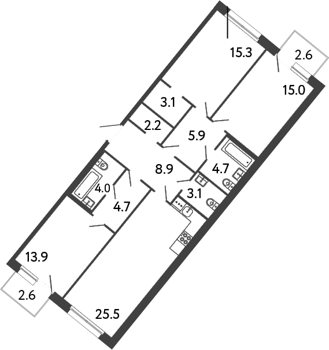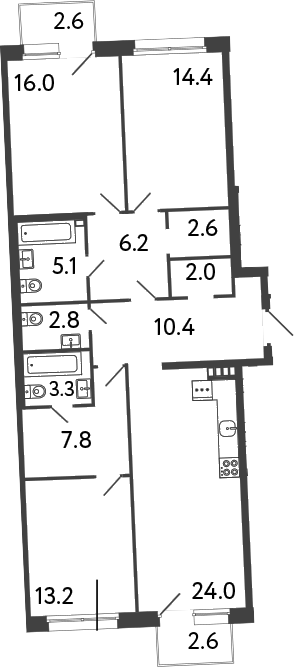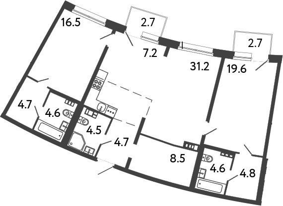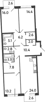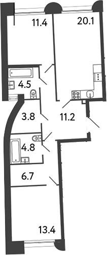 Площадь от 59.4 м2