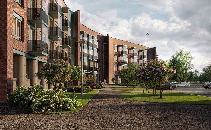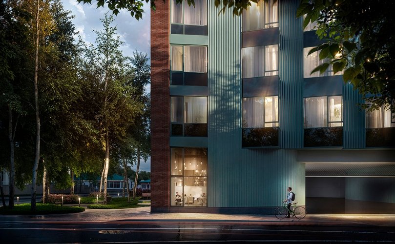 В проекте предлагается всего 94 квартиры: студии и квартиры с 1–3 комнатами площадью от 24 до 111 кв. м. В ряде планировок спроектированы мастер-спальни, гардеробные и собственные террасы. Высота потолков на типовых этажах составляет 2,99 м, на последнем — 3,14 м, в коммерческих помещениях — 4,6 м.