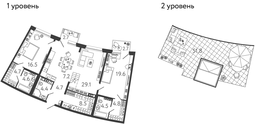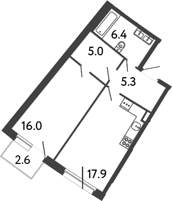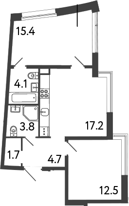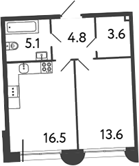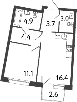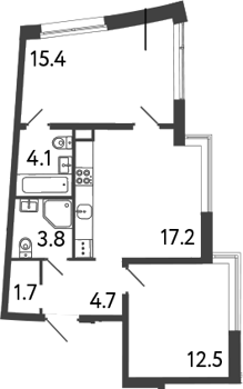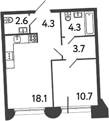 Площадь от 43.7 м2