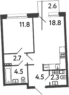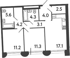 Площадь от 42.2 м2